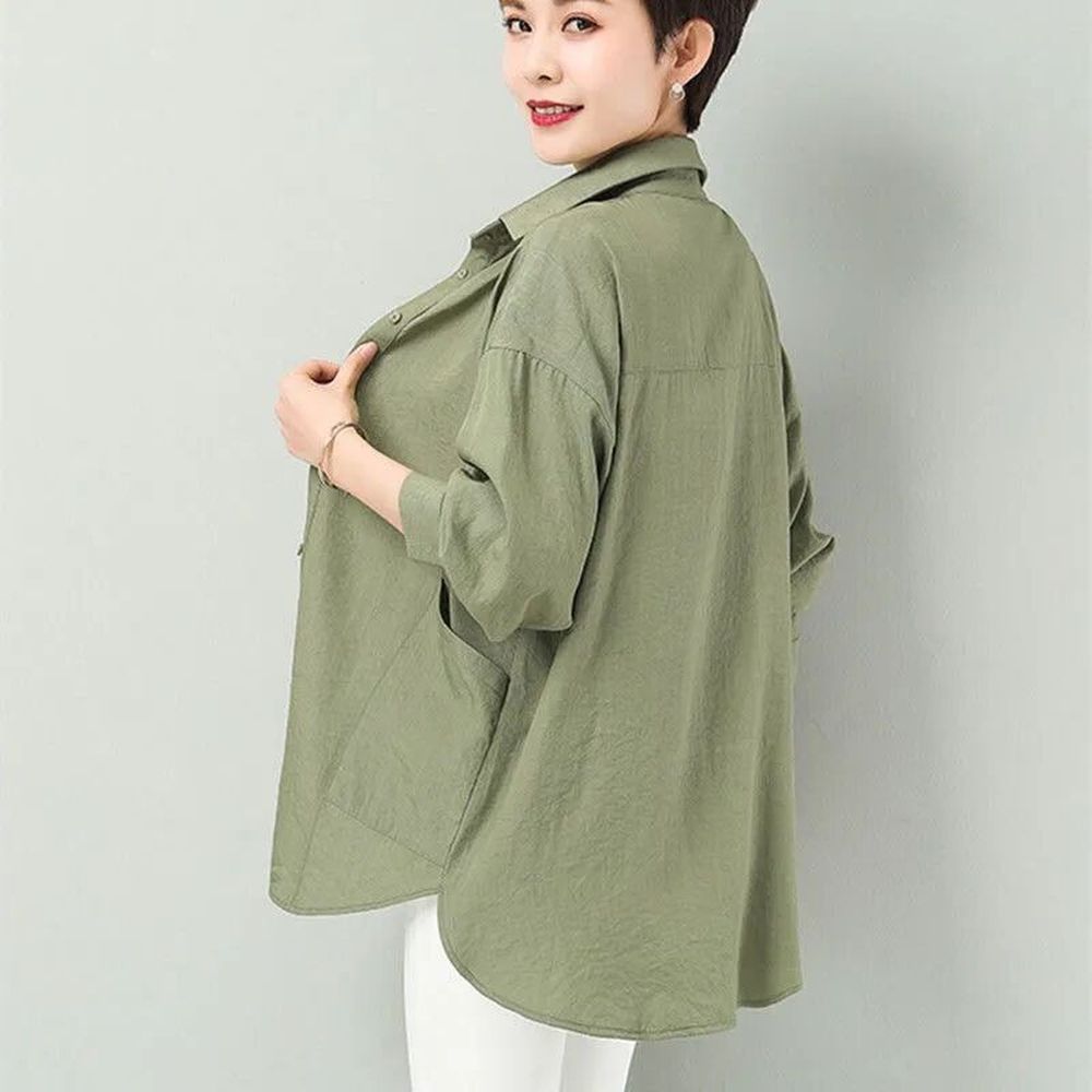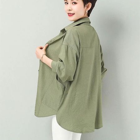 Cotton Long Sleeve Shirt Women's Medium Length Cardigan Thin Coat