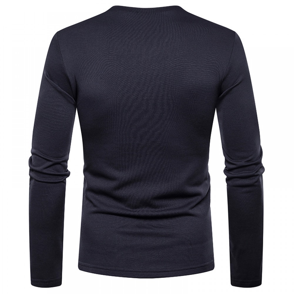 Round Neck Long-Sleeved T-Shirt Men's Trendy Inner Wear Plus Velvet Thickened Warm Base Layer Solid Color