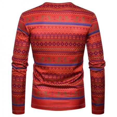 New Men's Round Neck 3D Santa Claus Costume Printing Long-Sleeved T-Shirt