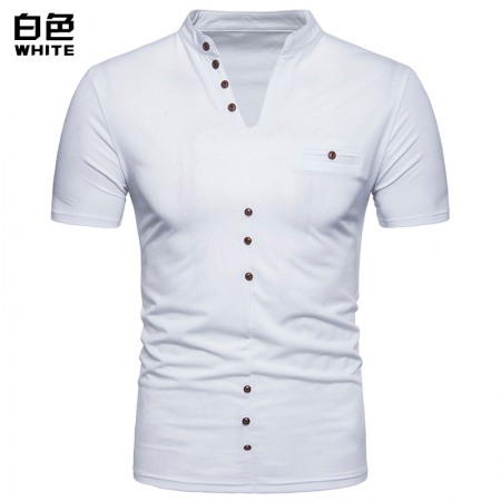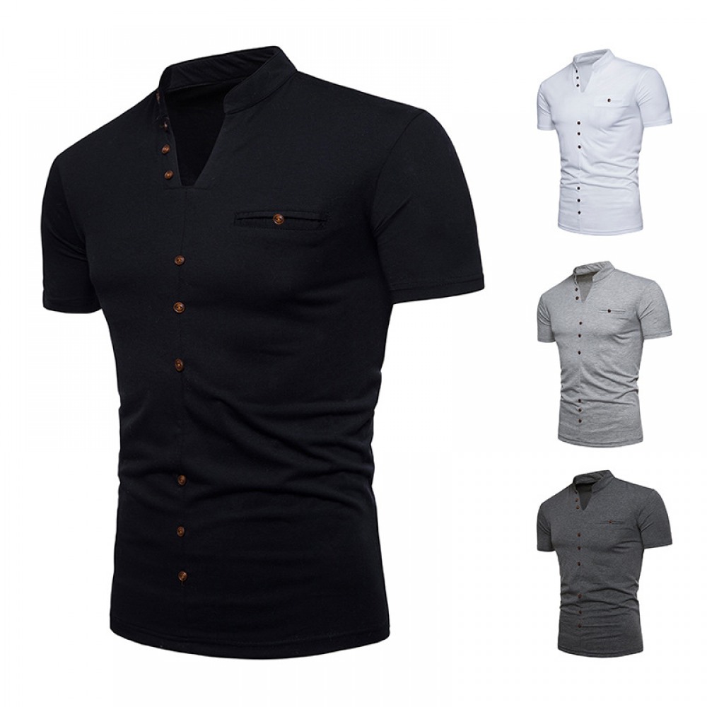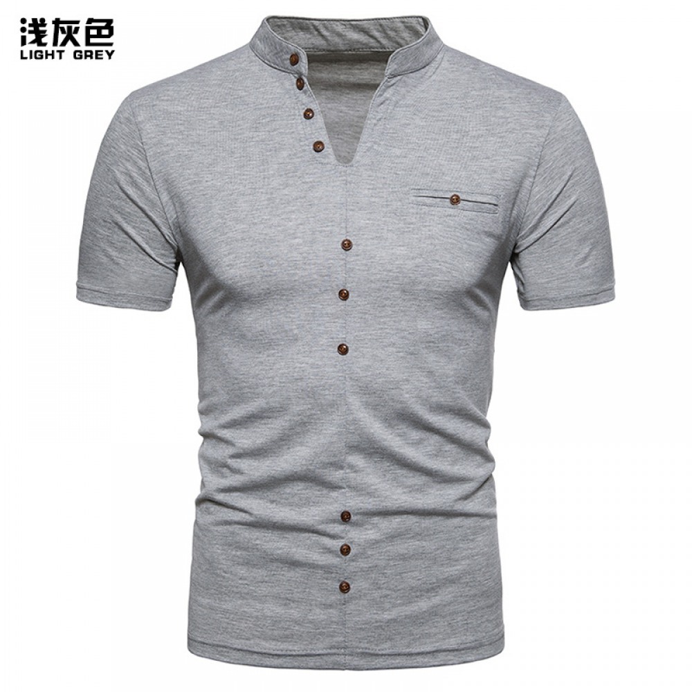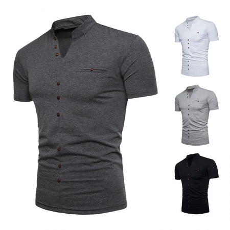 New Fashion Men's Henry Collar Design Short Sleeve T-Shirt