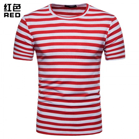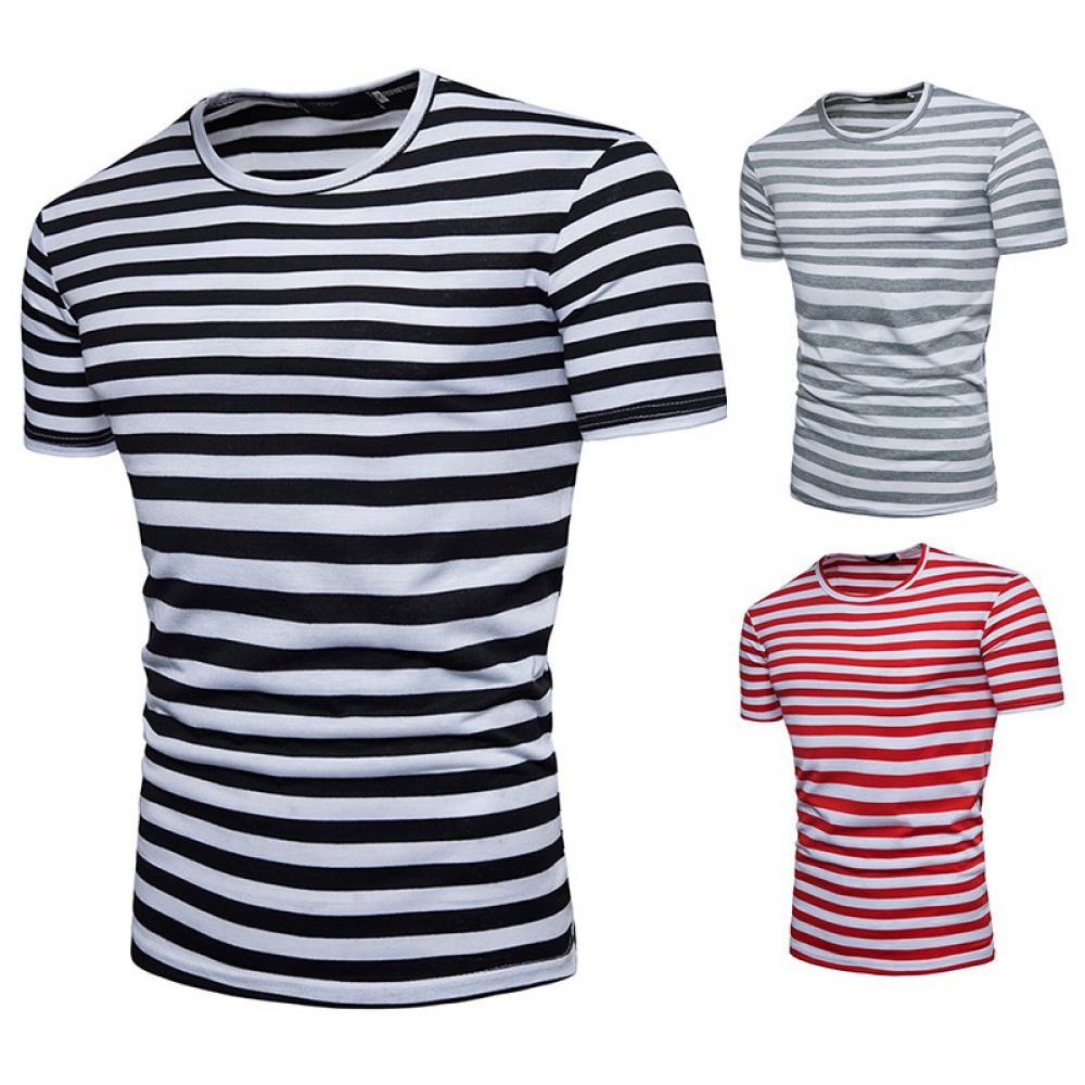 New Men's Plus Size Striped Short Sleeve T-Shirt