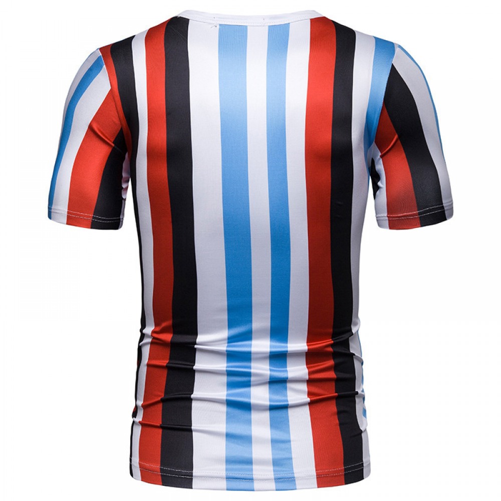 New Summer Men's Short-Sleeved T-Shirt Mens Contrast Striped Slim Casual T-Shirt