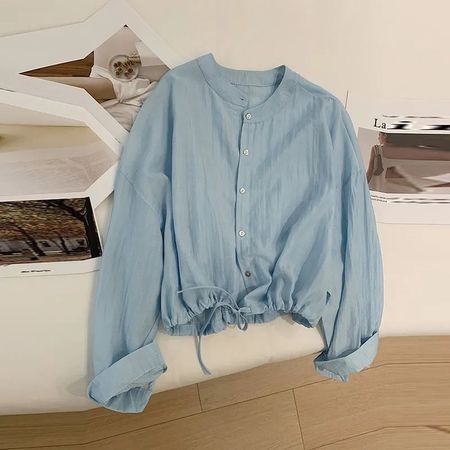 Retro Long Sleeve Shirt Women's Loose Casual Short Top
