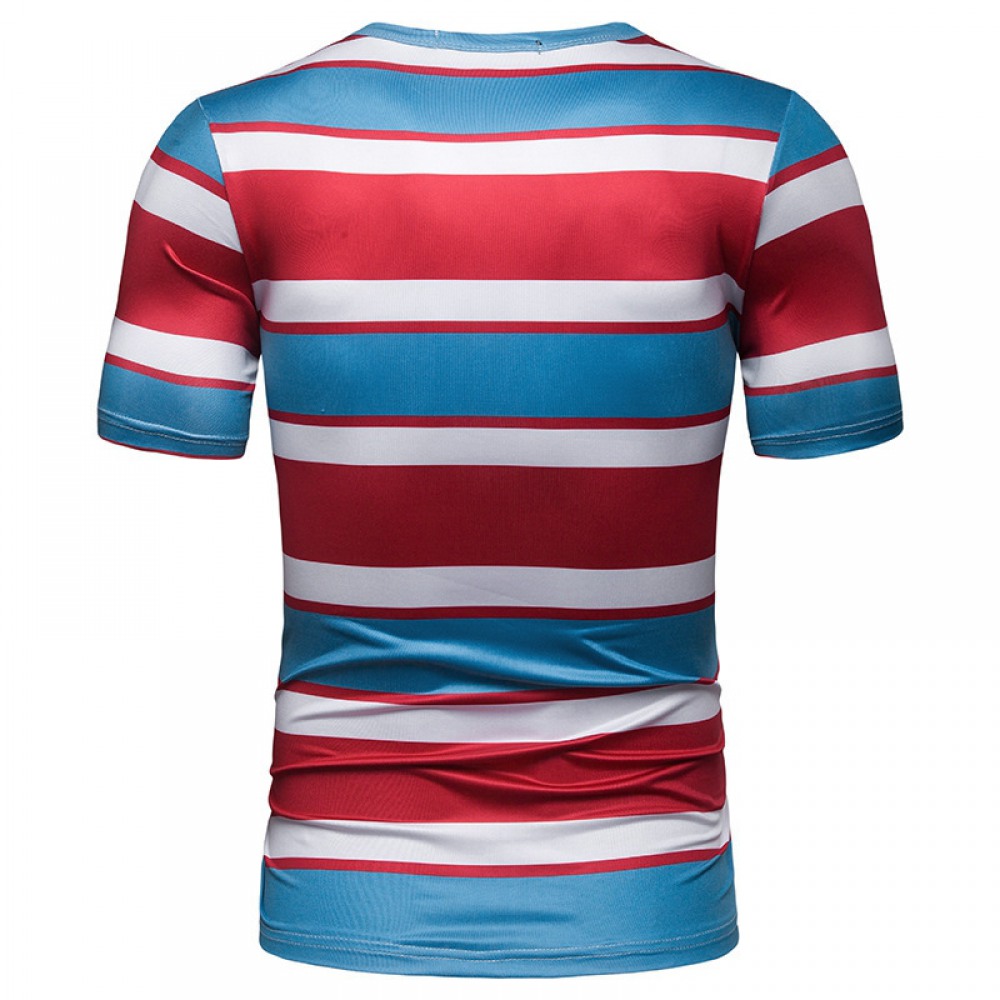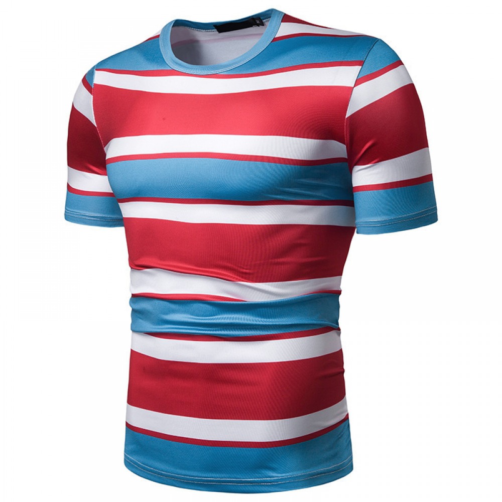 New Summer Men's Short-Sleeved T-Shirt Mens Contrast Striped Slim Casual T-Shirt
